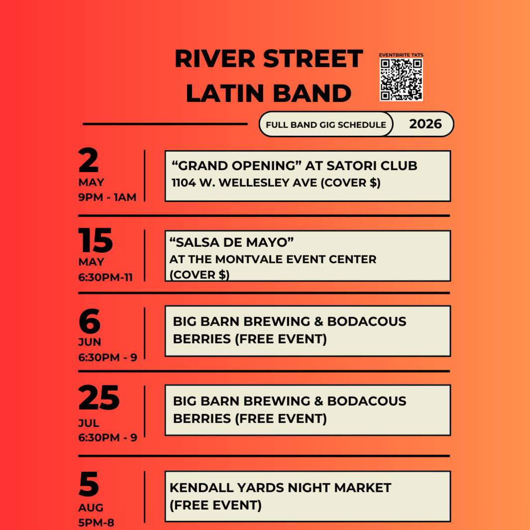 Privacy Statement for River Street Latin Group/BandUpdated on 11/26/25This Privacy Statement outlines how River Street Latin Group/Band (referred to as "we," "us," or "our") collects, uses, and protects your information when you visit or make a purchase from our website(s), www.riverstreetlatingroup.com or www.riverstreetlatinband.com.1. Scope of Services and Data CollectionWe provide musical entertainment services exclusively to clients located in the United States, specifically within the states of Washington and Idaho.For all visitors and customers throughout the U.S.:Merchandise Sales: We may sell and ship physical merchandise (such as t-shirts, mugs, caps, etc.) to customers across the United States.Event Sales: We may sell tickets to events at different locations.Entertainment Services: We may provide our entertainment services such as live music performances, dance lessons, DJ services, emcee services, and sound/light reinforcement for a fee.Information Collected: When you make a purchase, we collect necessary transaction and shipping information, such as your name, shipping address, billing address, email address, and payment information. This information is used to process your order and fulfill the transaction.2. Information We CollectWhen you interact with our website, we may collect the following types of information:Personal Information: This includes identifiable information you voluntarily provide to us when booking a service (if applicable to Washington/Idaho clients) or purchasing merchandise, such as:-Name